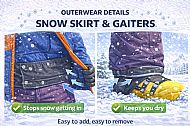 - Should have a snow skirt inside to stop snow from getting up your back